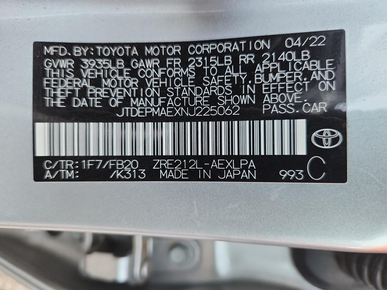 - ВИН: JTDEPMAEXNJ******