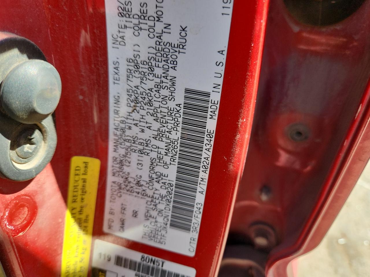 - ВИН: 5TFJX4GN1DX******