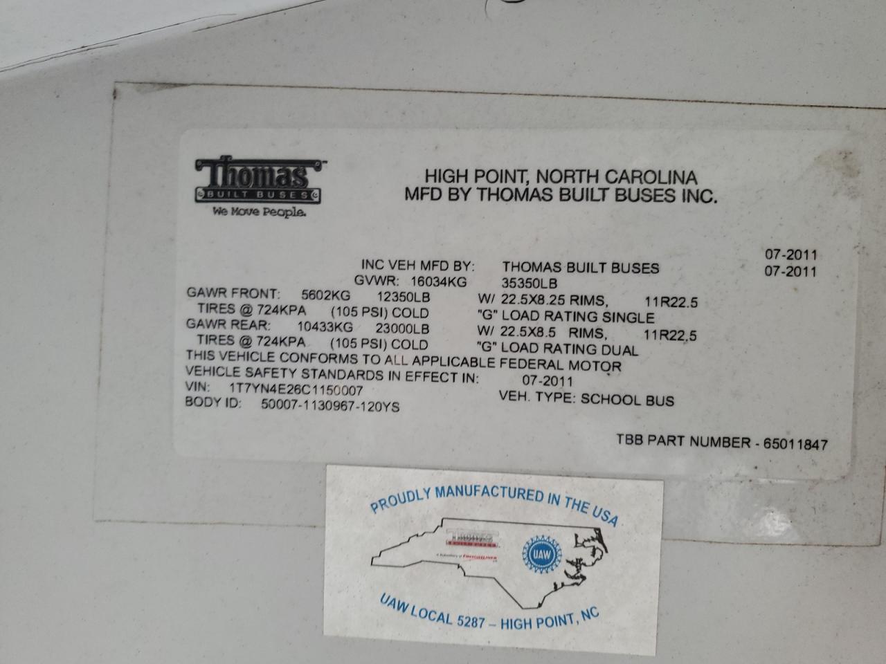 2012 THOMAS SAF-T-LINER HDX - SCHOOL BUS