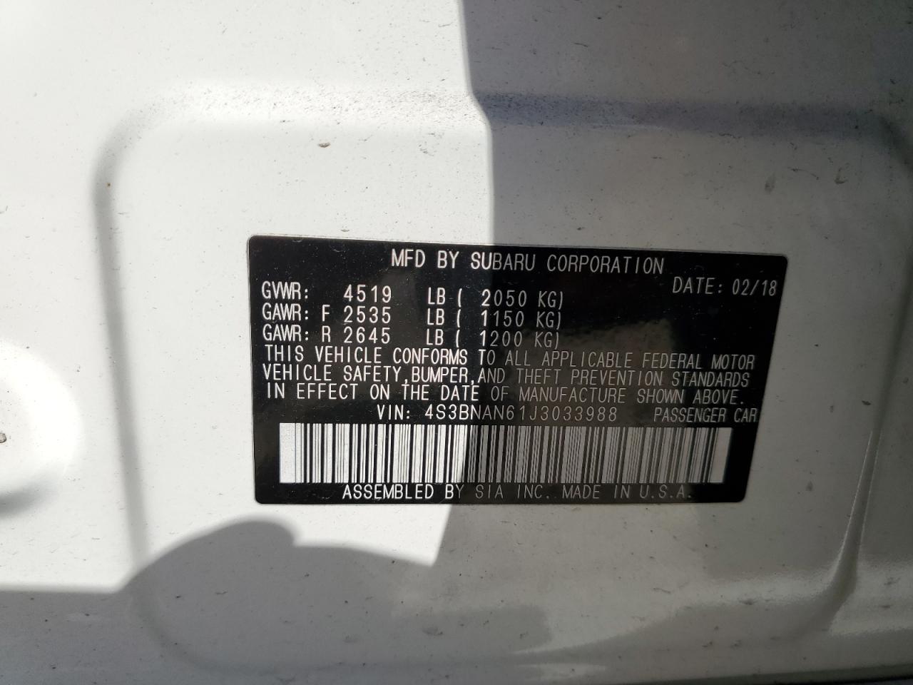 - ВИН: 4S3BNAN61J3******