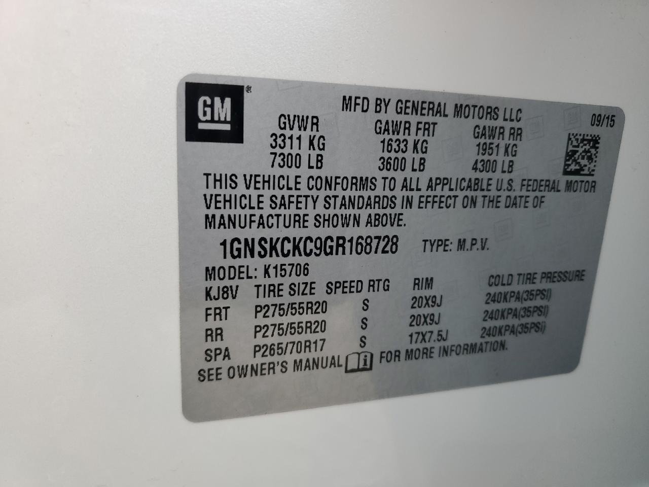 - ВИН: 1GNSKCKC9GR******