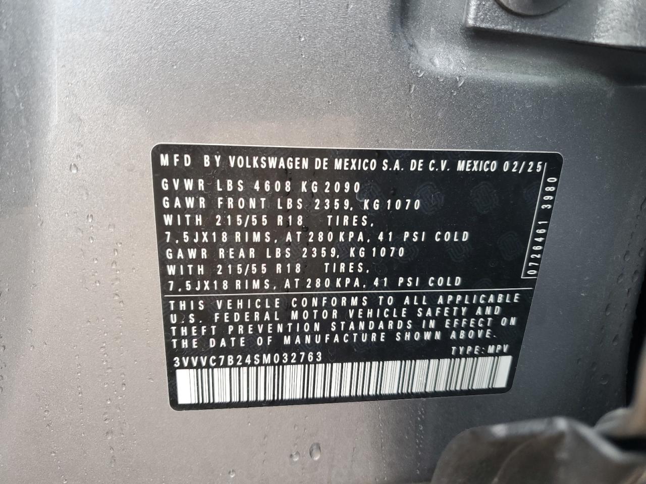 2025 VOLKSWAGEN TAOS SE из США