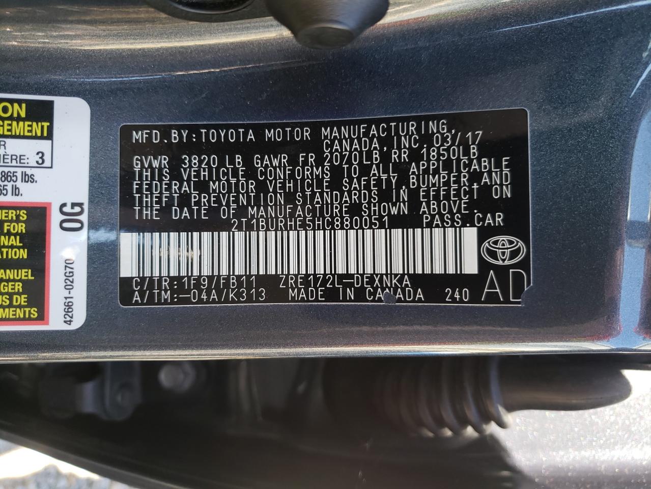 2017 TOYOTA COROLLA L из США