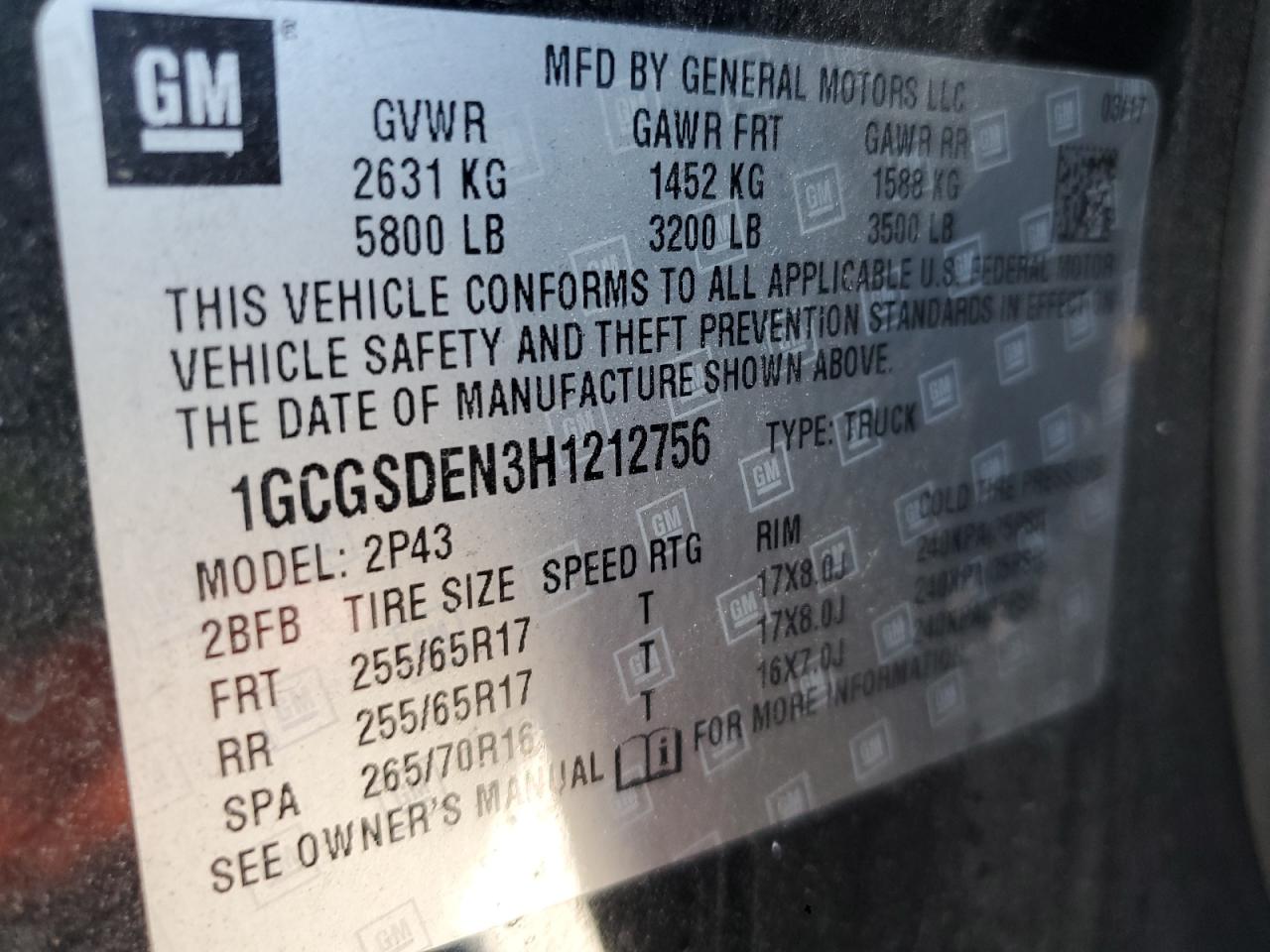 - ВИН: 1GCGSDEN3H1******