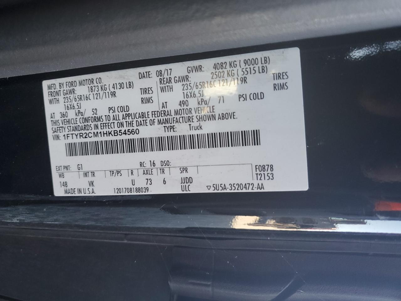 - ВИН: 1FTYR2CM1HK******