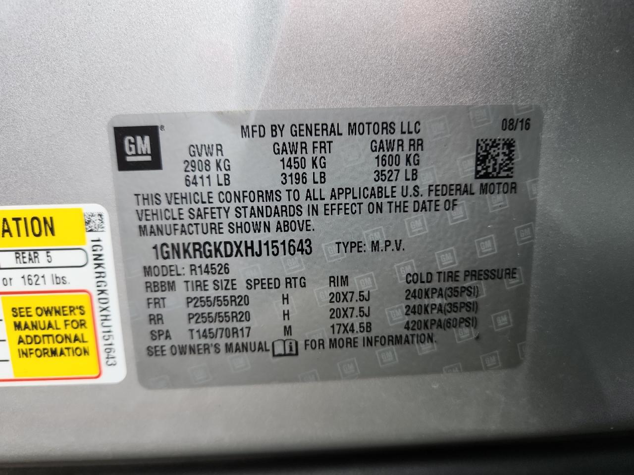 - ВИН: 1GNKRGKDXHJ******