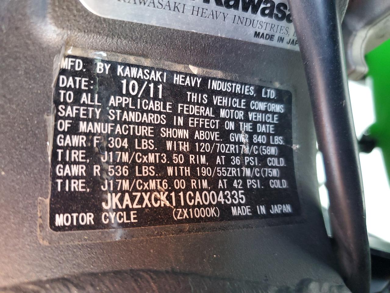 2012 KAWASAKI ZX1000 K из США