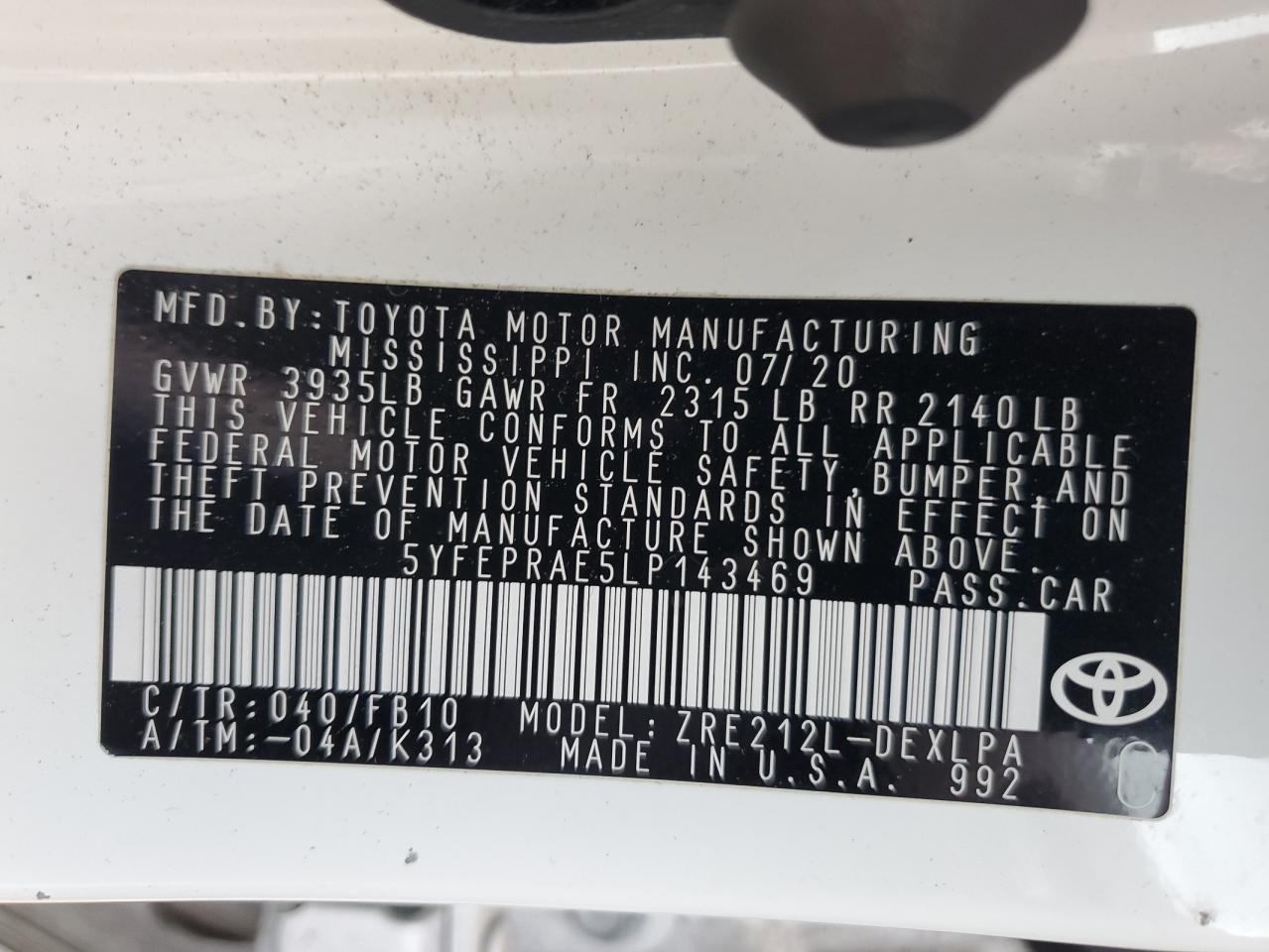 - ВИН: 5YFEPRAE5LP******