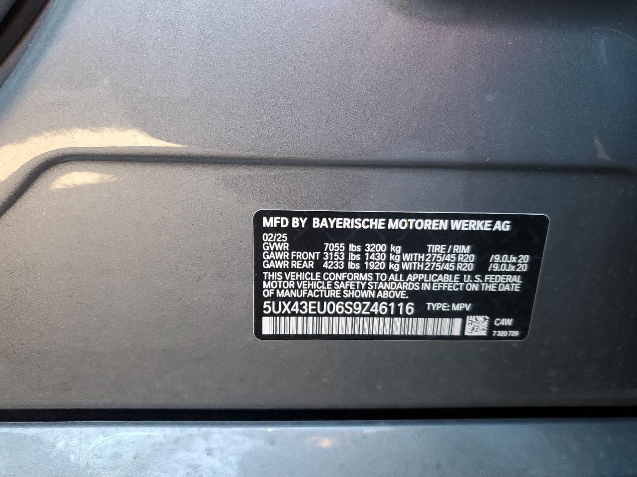 - ВИН: 5UX43EU06S9******