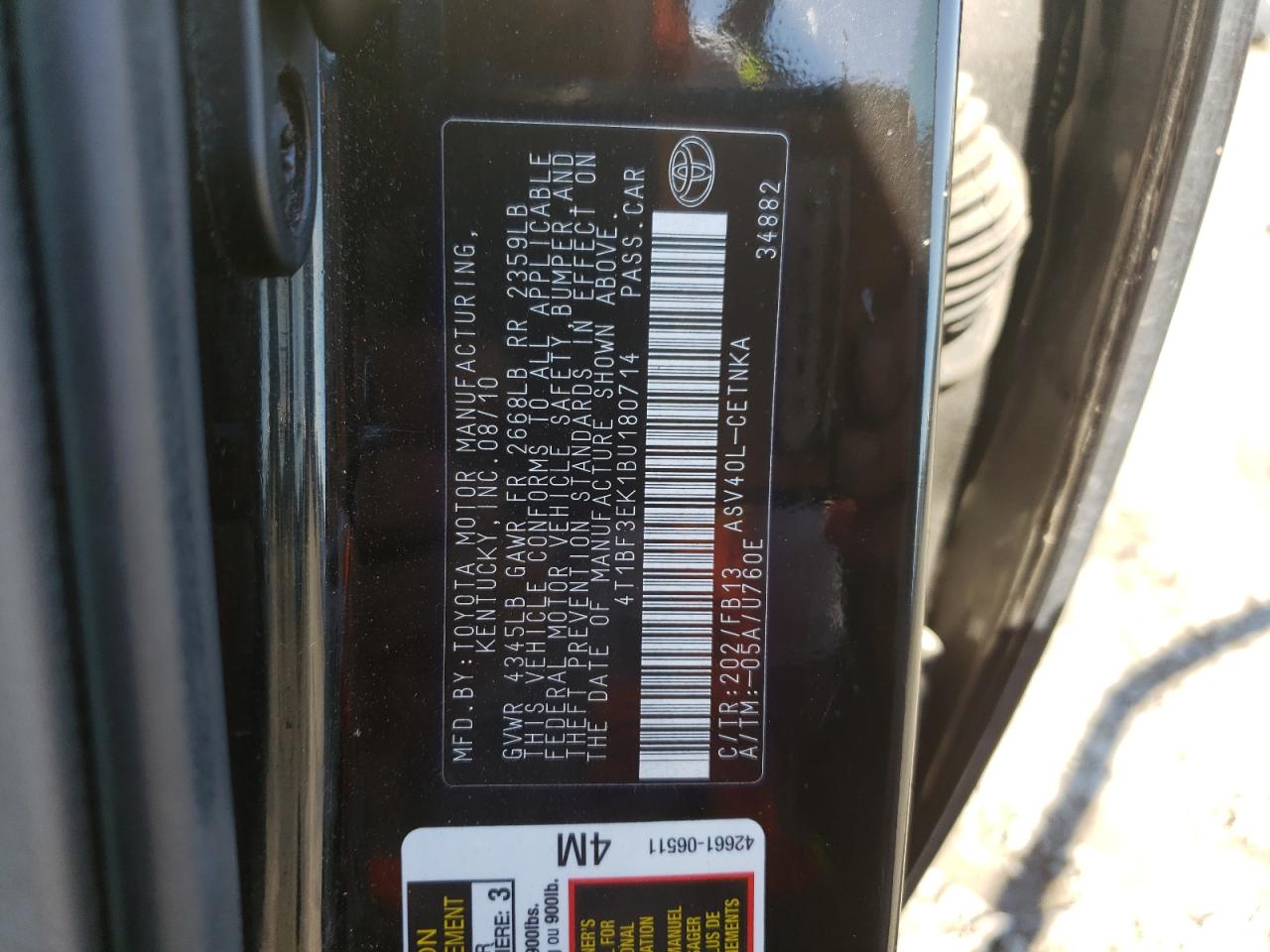 - ВИН: 4T1BF3EK1BU******
