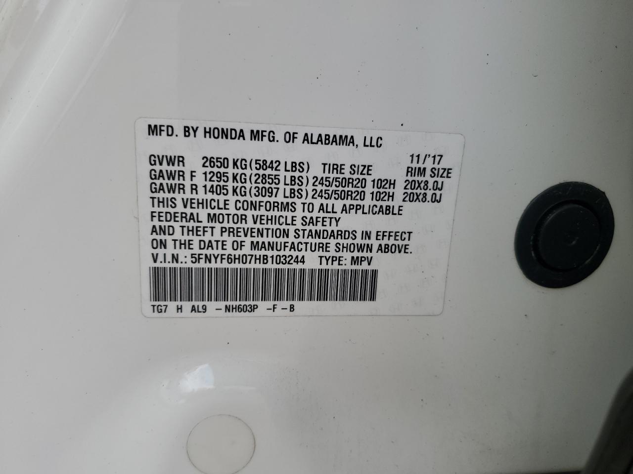 - ВИН: 5FNYF6H07HB******