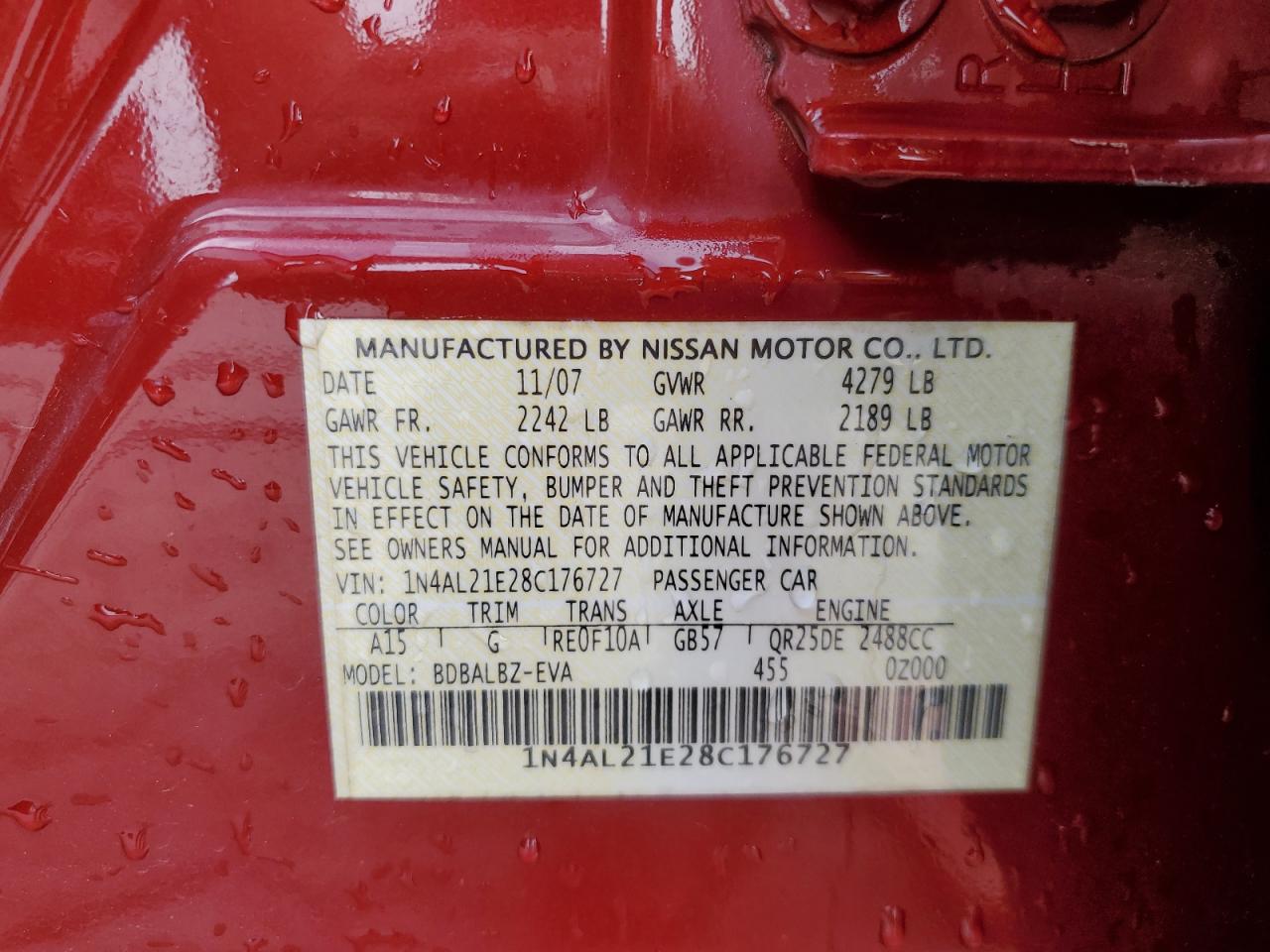 - ВИН: 1N4AL21E28C******