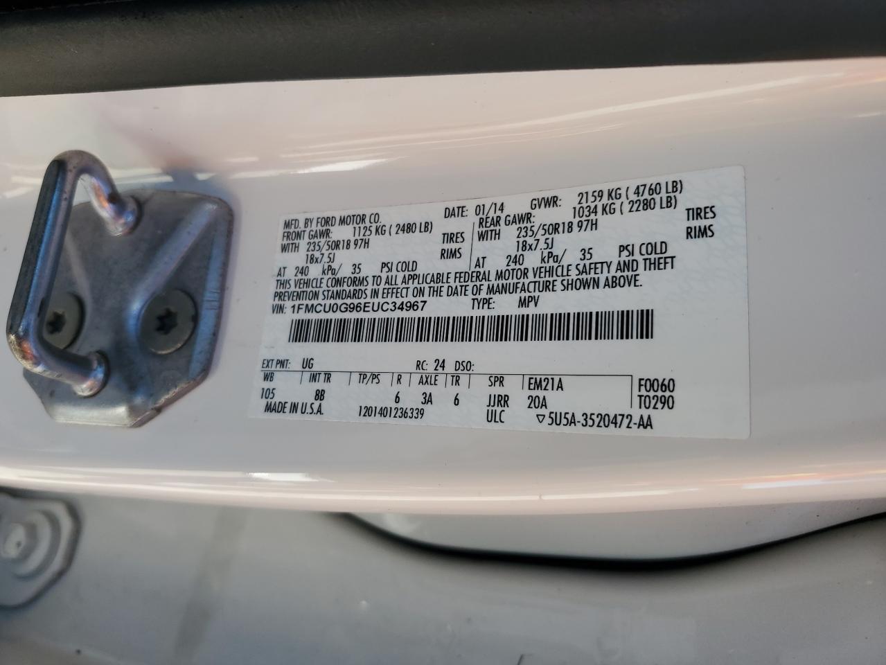 - ВИН: 1FMCU0G96EU******