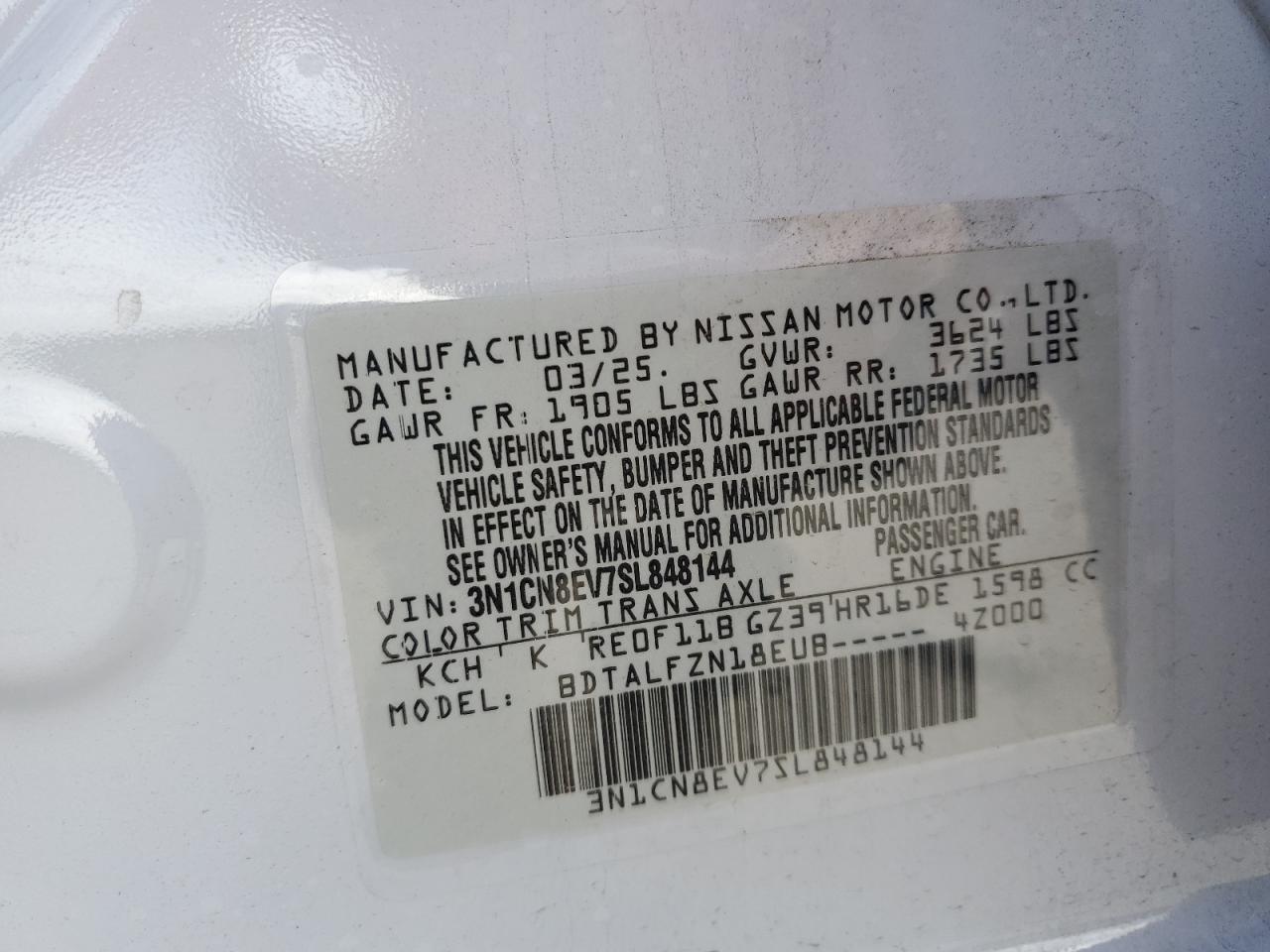 - ВИН: 3N1CN8EV7SL******