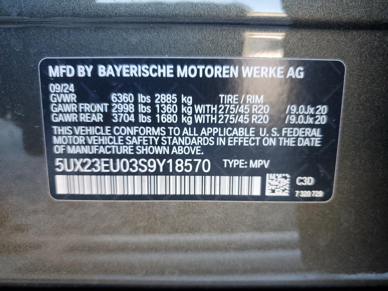 - ВИН: 5UX23EU03S9******