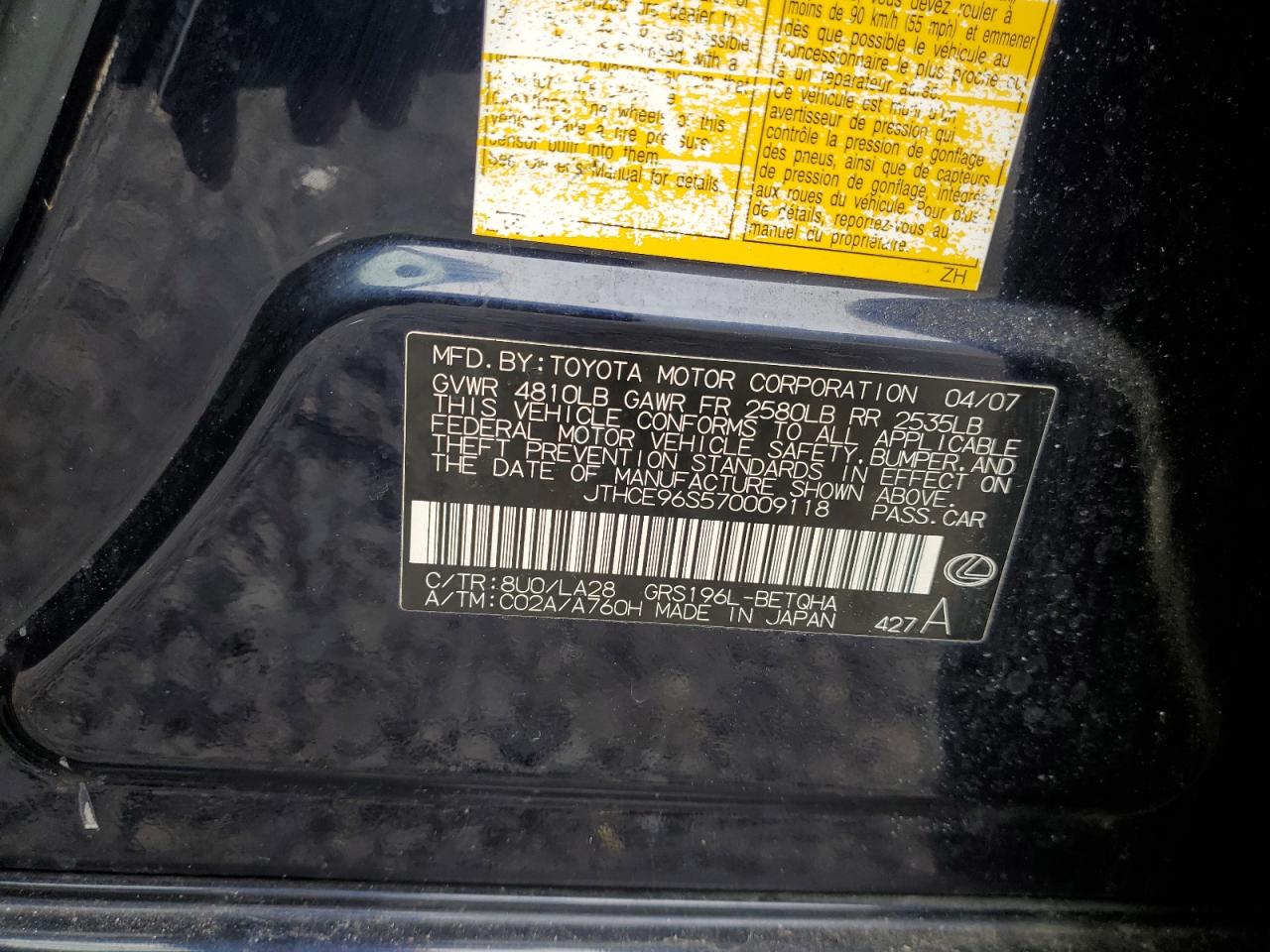 - ВИН: JTHCE96S570******