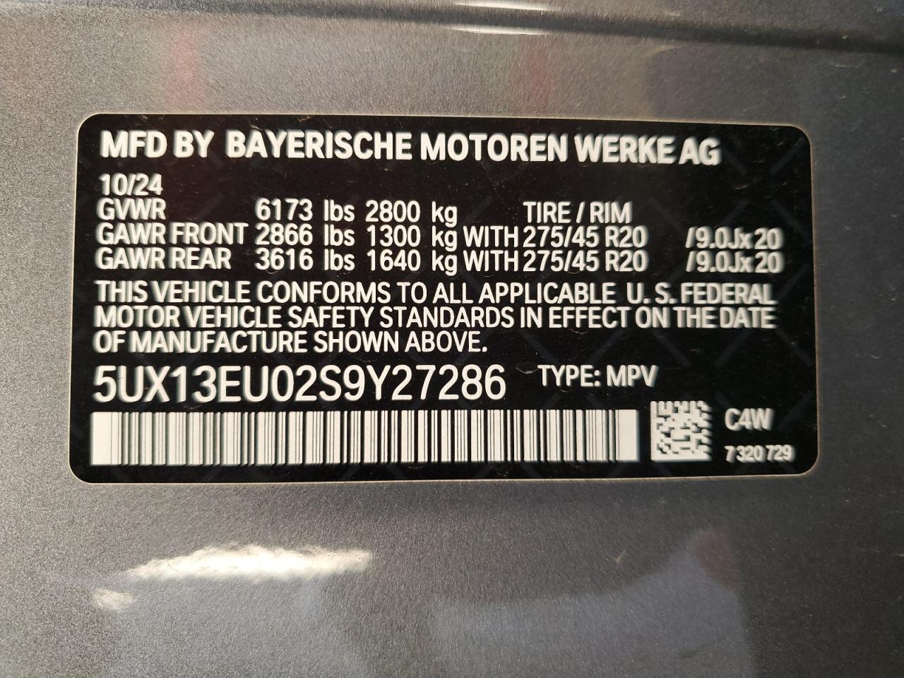 - ВИН: 5UX13EU02S9******