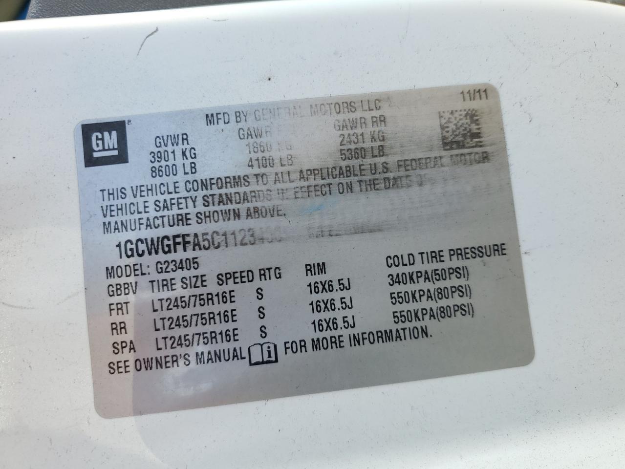 - ВИН: 1GCWGFFA5C1******