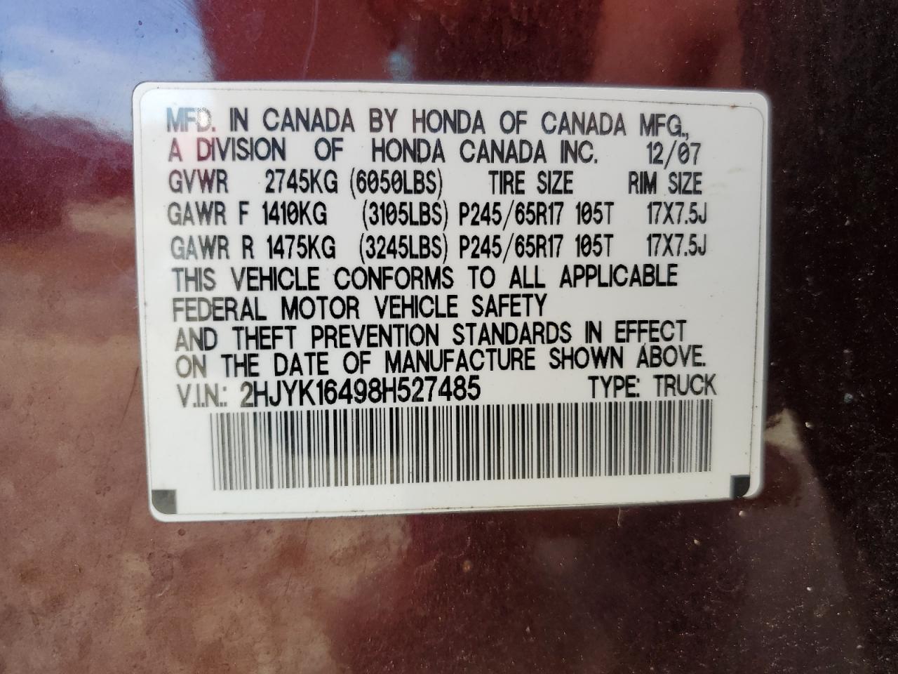- ВИН: 2HJYK16498H******