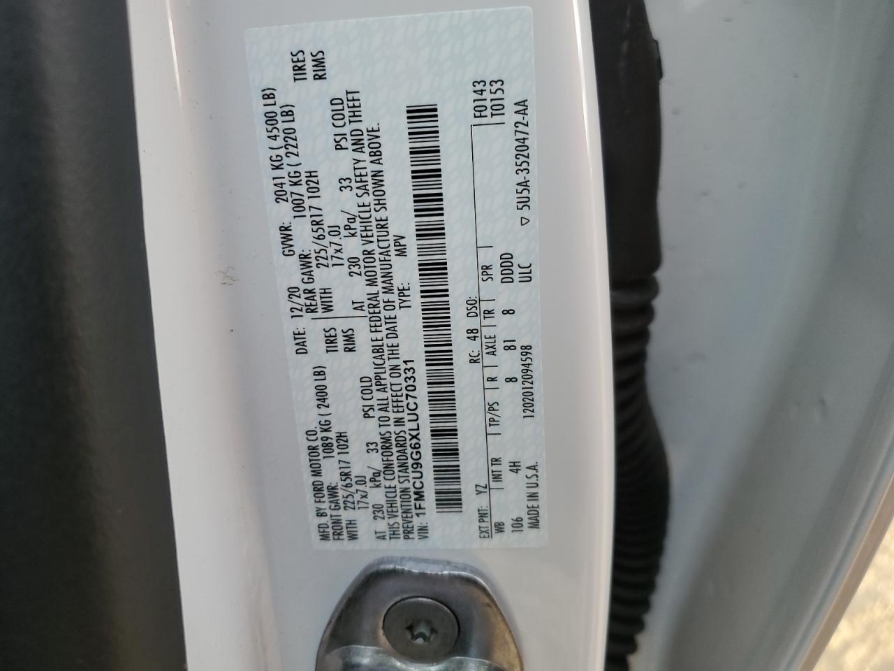 - ВИН: 1FMCU9G6XLU******