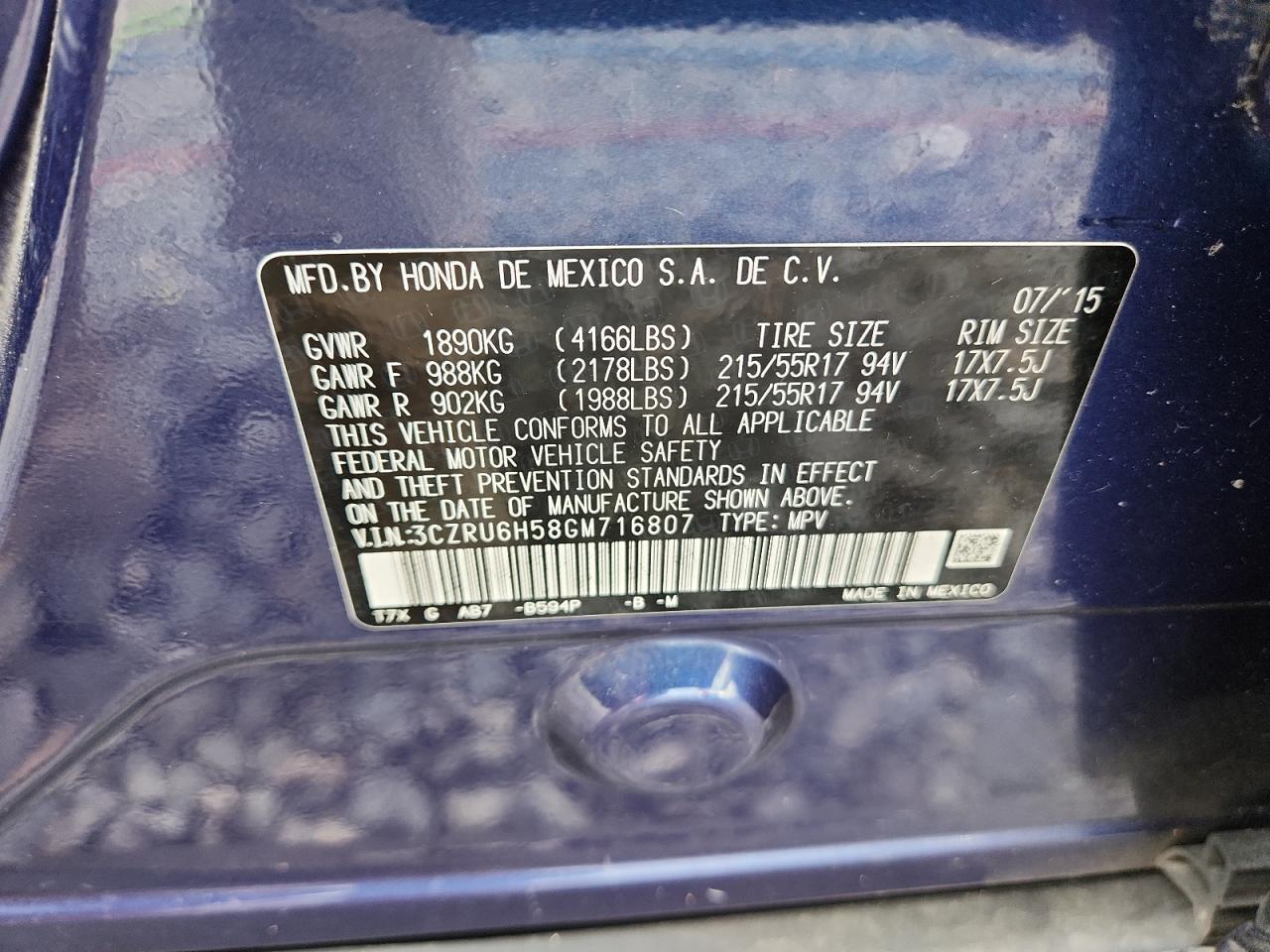 - ВИН: 3CZRU6H58GM******