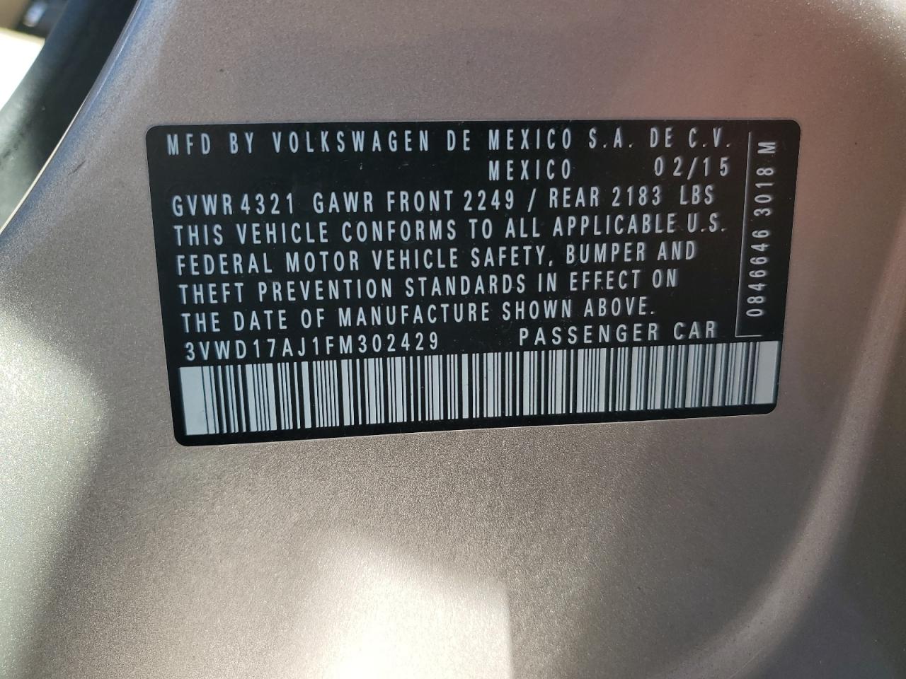 2015 VOLKSWAGEN JETTA SE из США