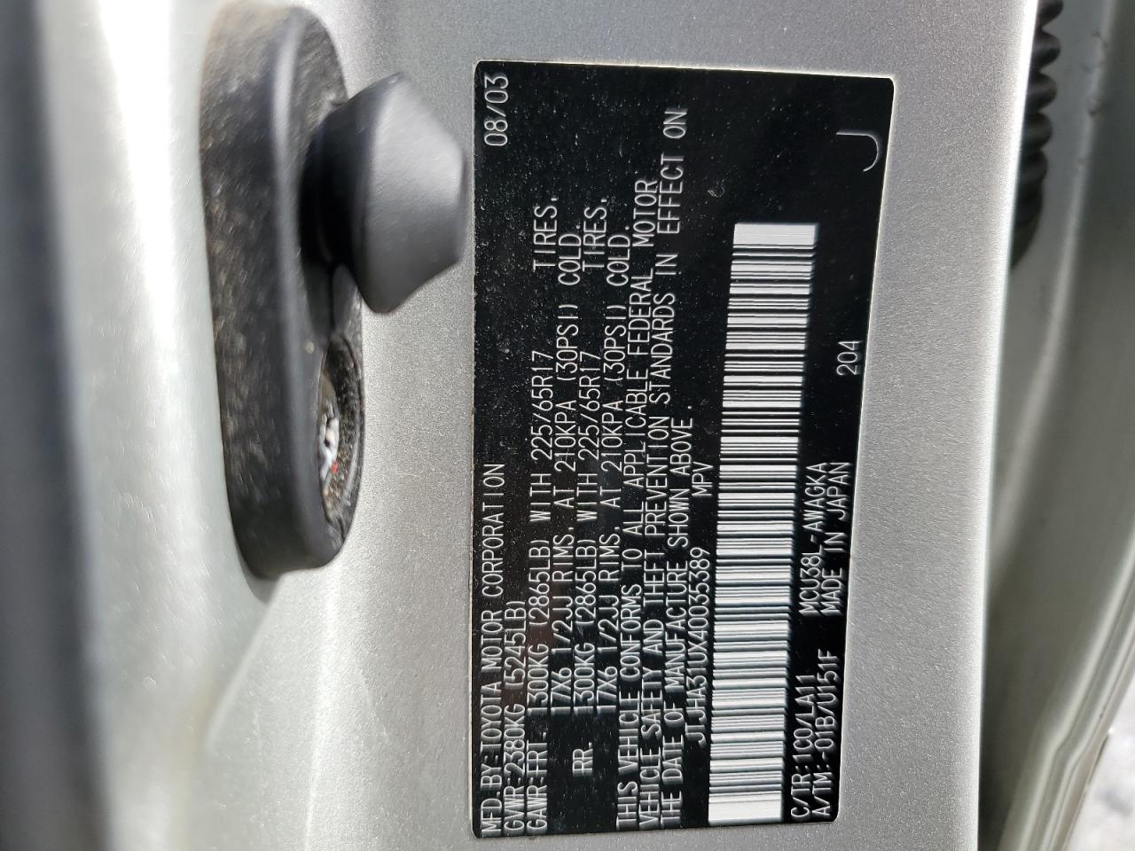 - ВИН: JTJHA31UX40******