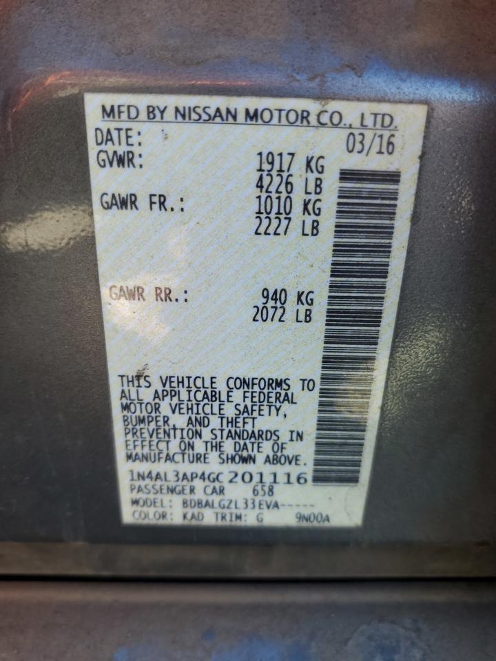 - ВИН: 1N4AL3AP4GC******