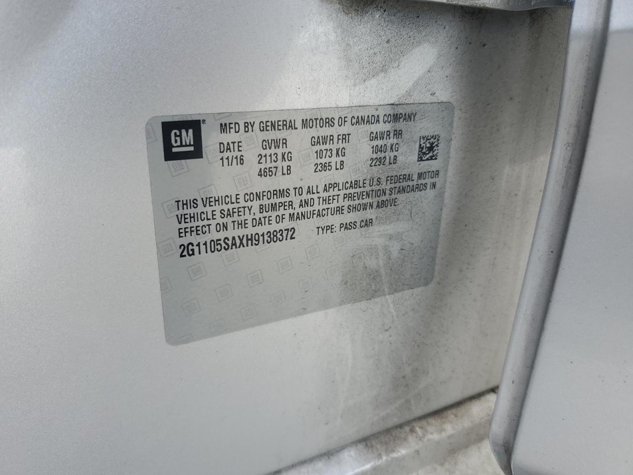 - ВИН: 2G1105SAXH9******