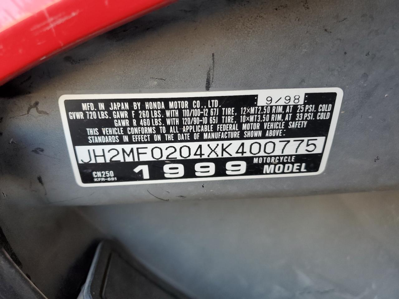 - ВИН: JH2MF0204XK******