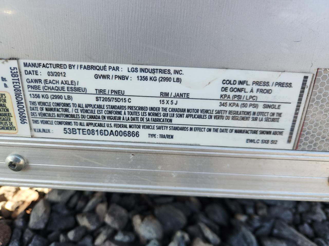 2013 LGS INDUSTRIES EWLC5X8S12 ENCLOSED CARGO TRAILER из США