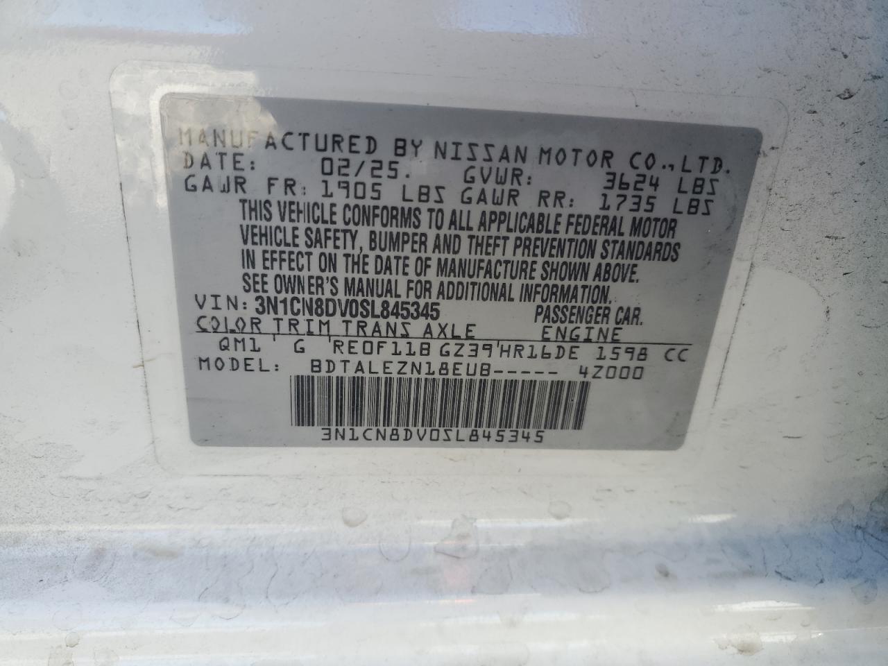 - ВИН: 3N1CN8DV0SL******