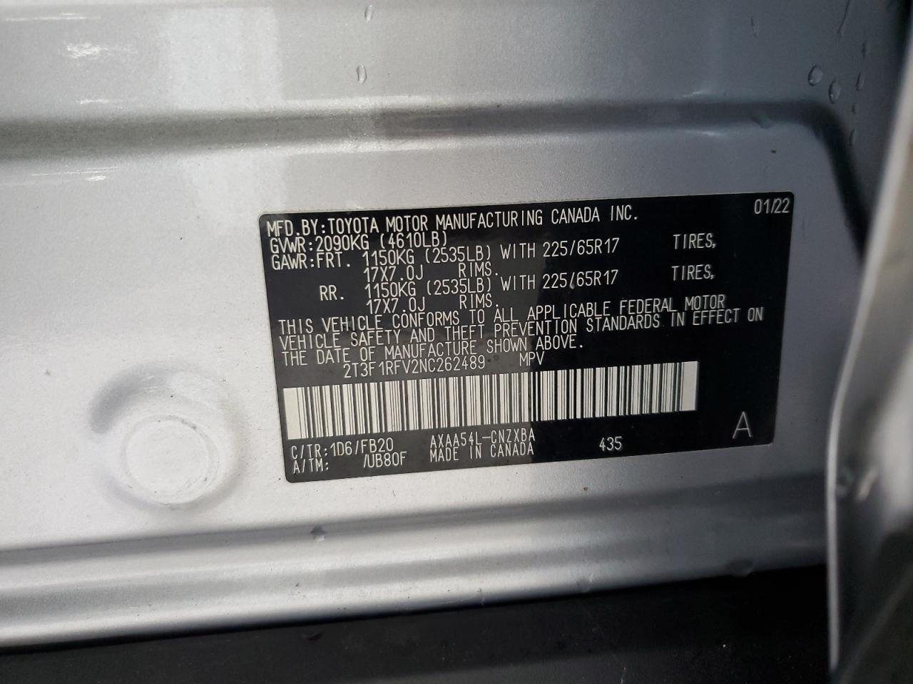 - ВИН: 2T3F1RFV2NC******