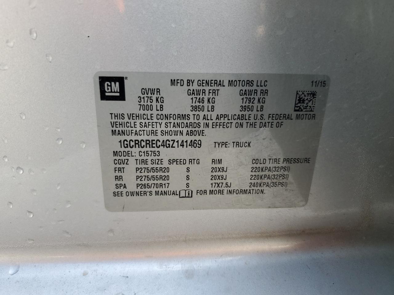 - ВИН: 1GCRCREC4GZ******