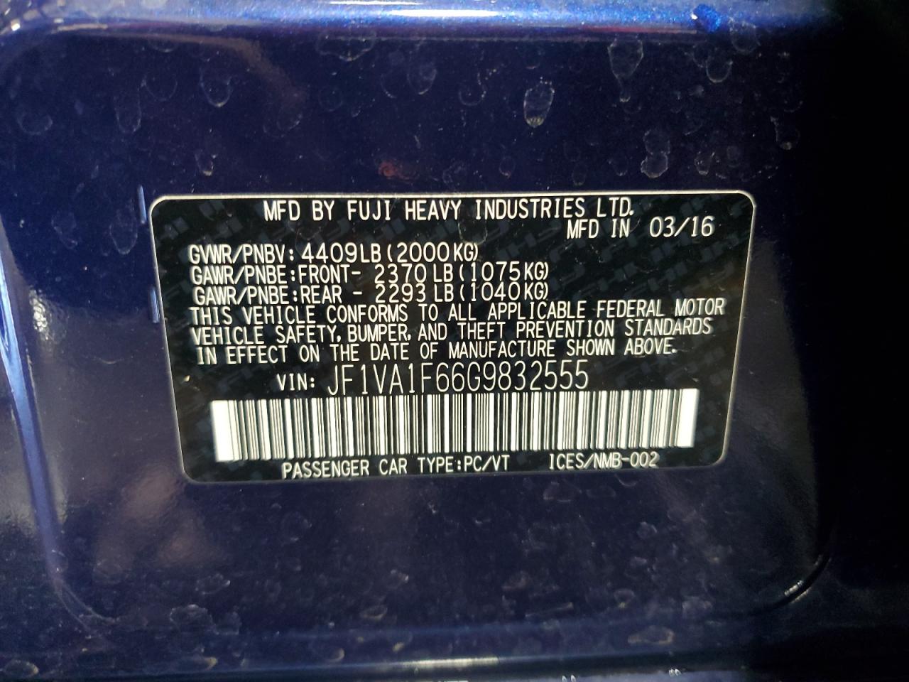 - ВИН: JF1VA1F66G9******