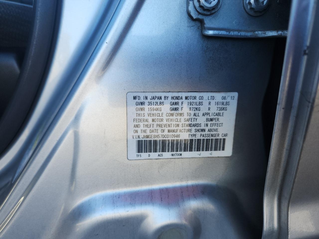 - ВИН: JHMGE8H57DC******