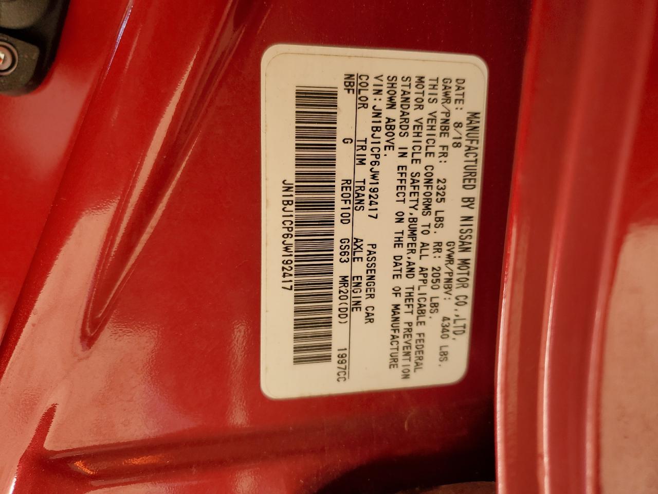 - ВИН: JN1BJ1CP6JW******