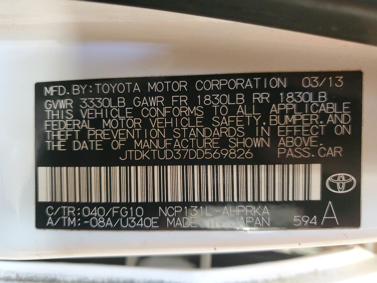 - ВИН: JTDKTUD37DD******