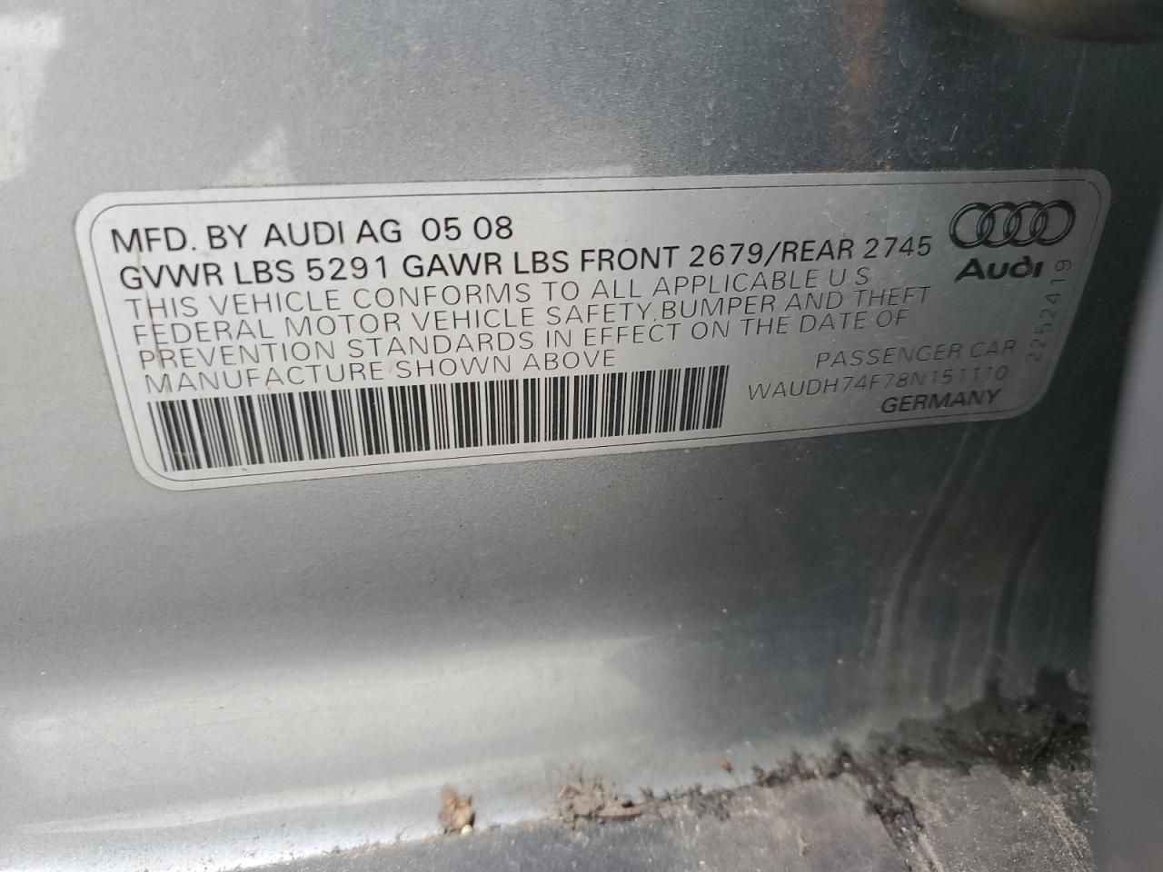 - ВИН: WAUDH74F78N******