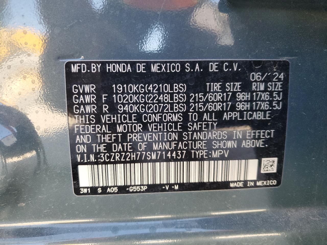 2025 HONDA HR-V EXL из США