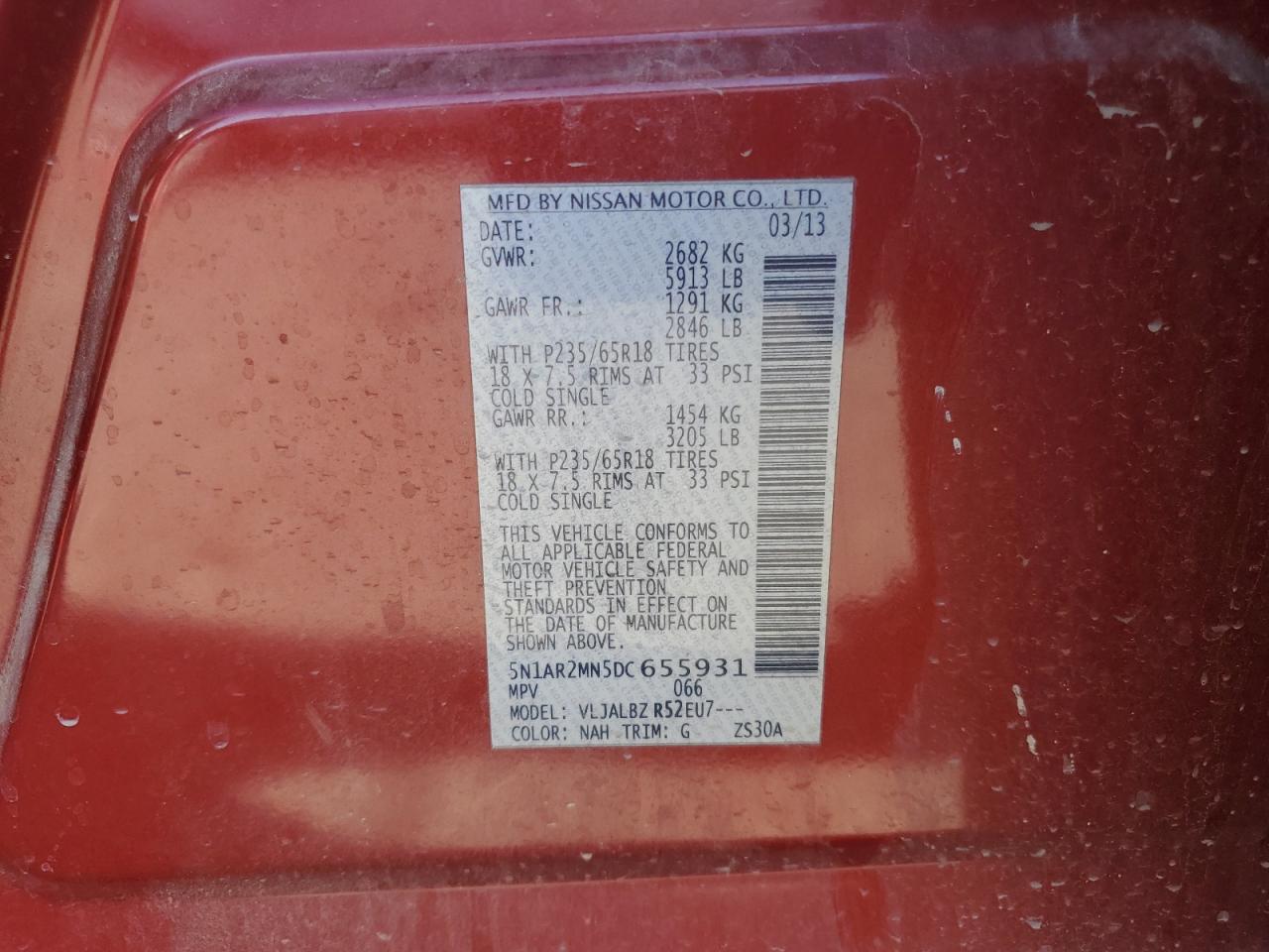 - ВИН: 5N1AR2MN5DC******
