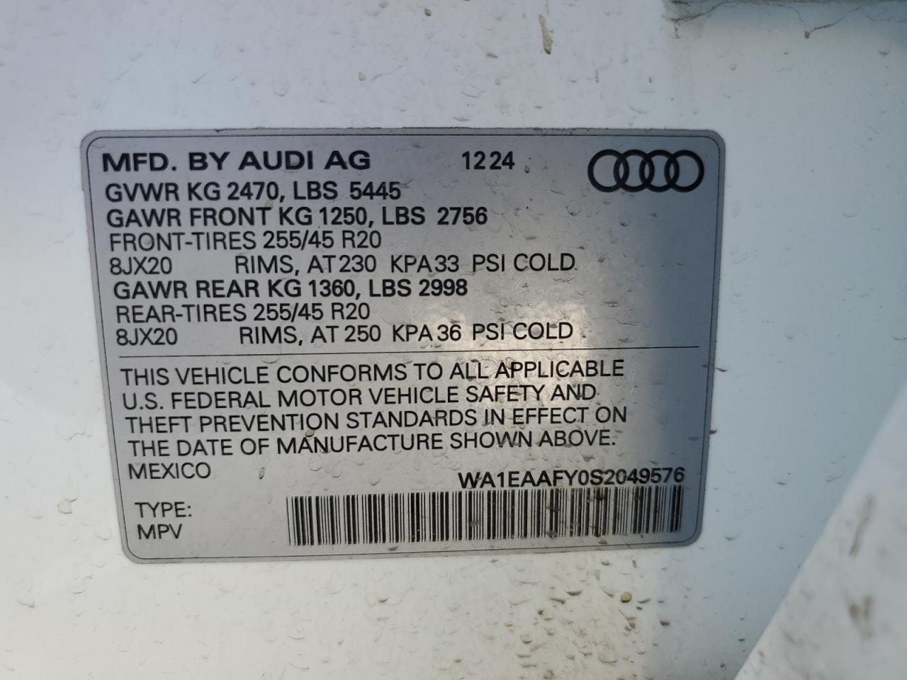 - ВИН: WA1EAAFY0S2******