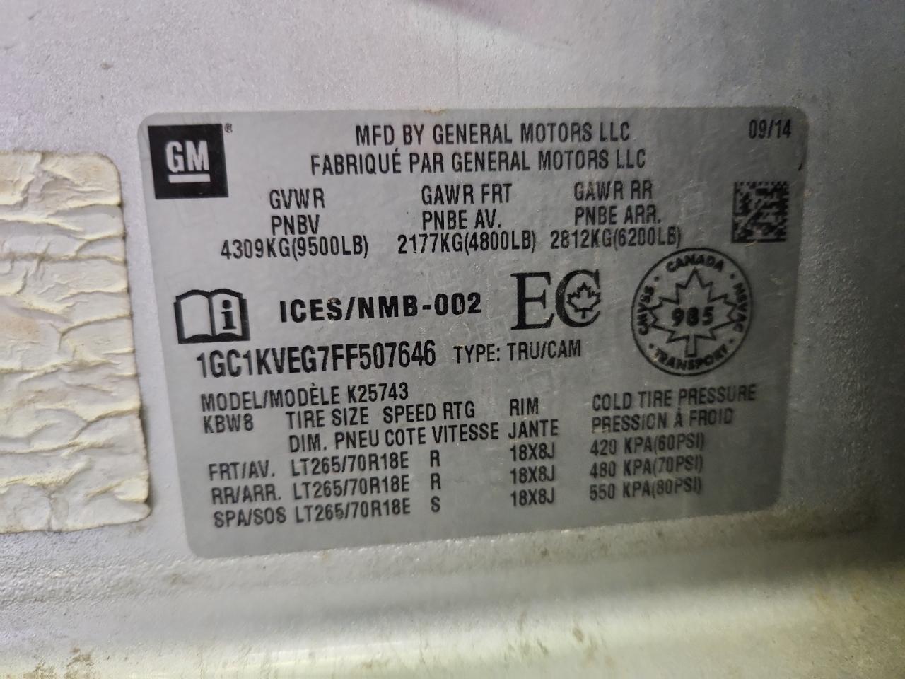 - ВИН: 1GC1KVEG7FF******