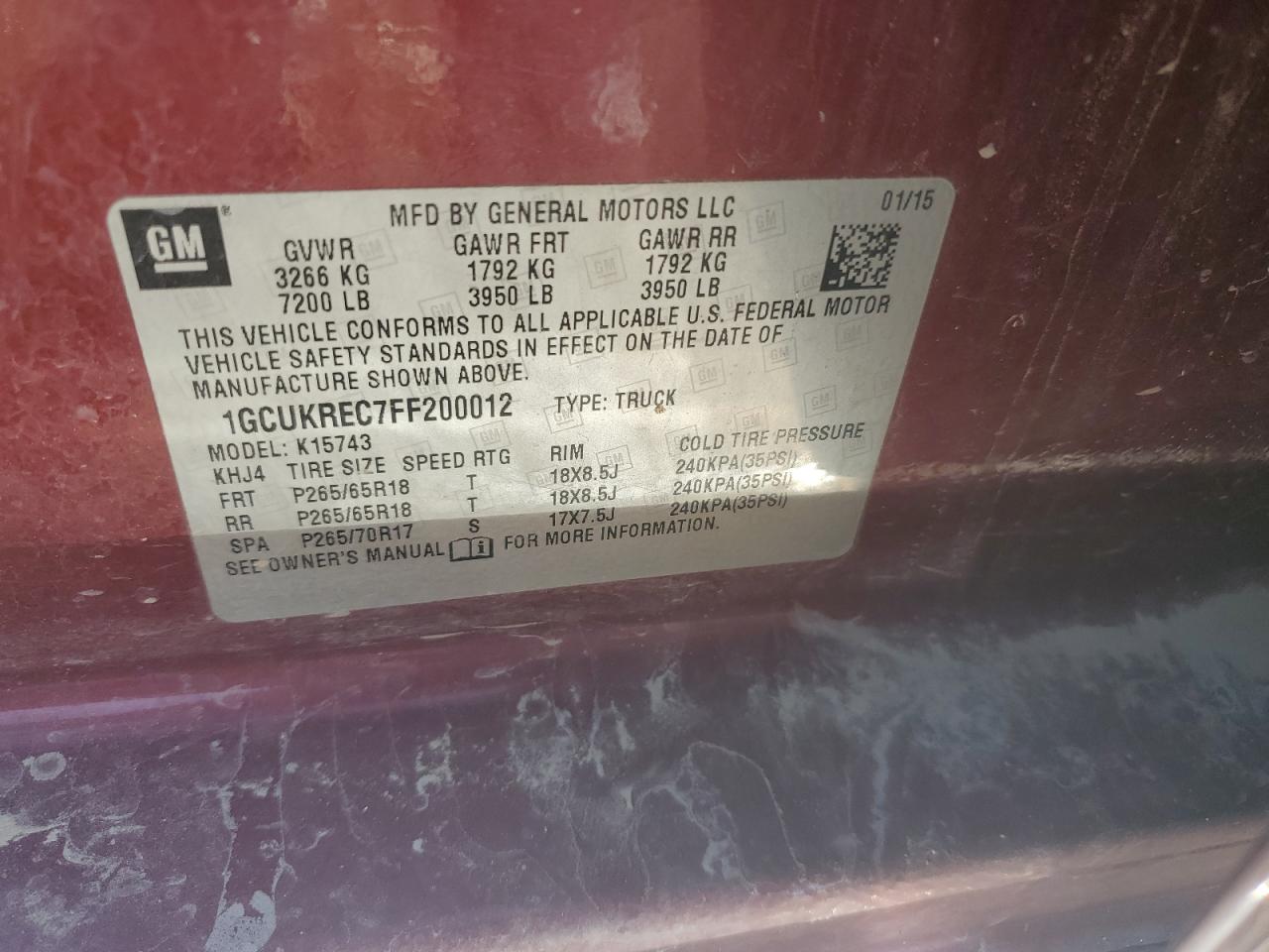 - ВИН: 1GCUKREC7FF******