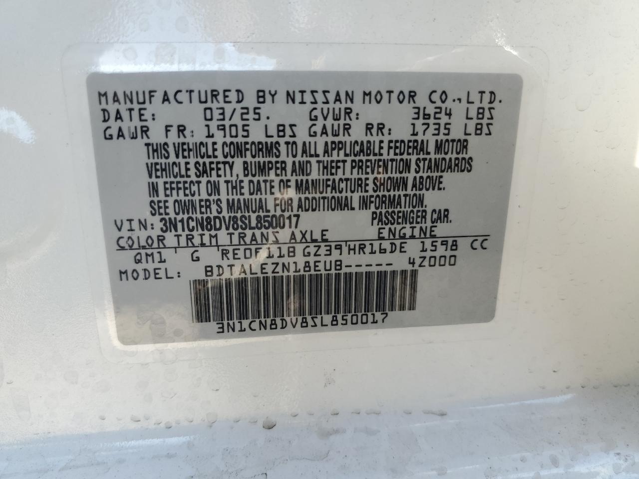 - ВИН: 3N1CN8DV8SL******