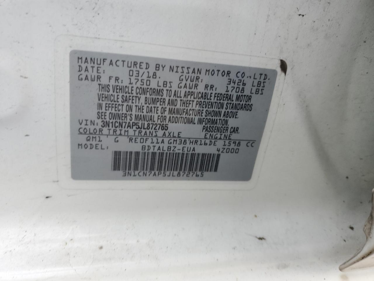 2018 NISSAN VERSA S