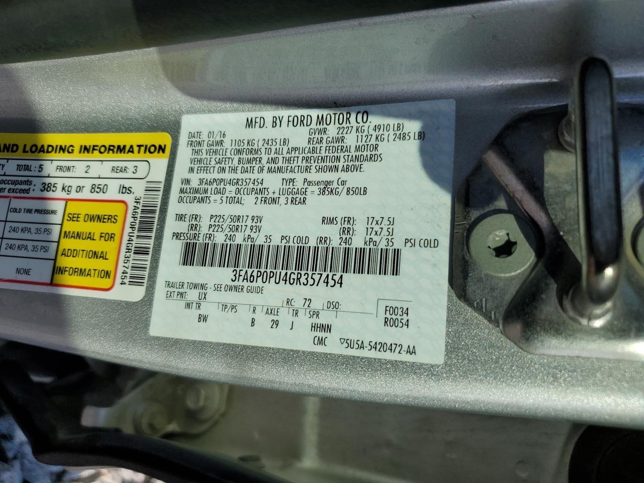 - ВИН: 3FA6P0PU4GR******