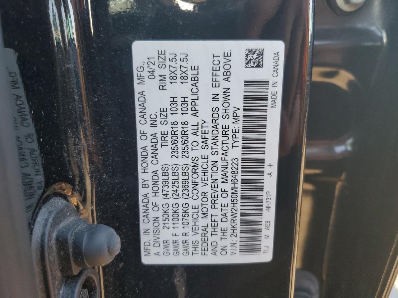 - ВИН: 2HKRW2H50MH******