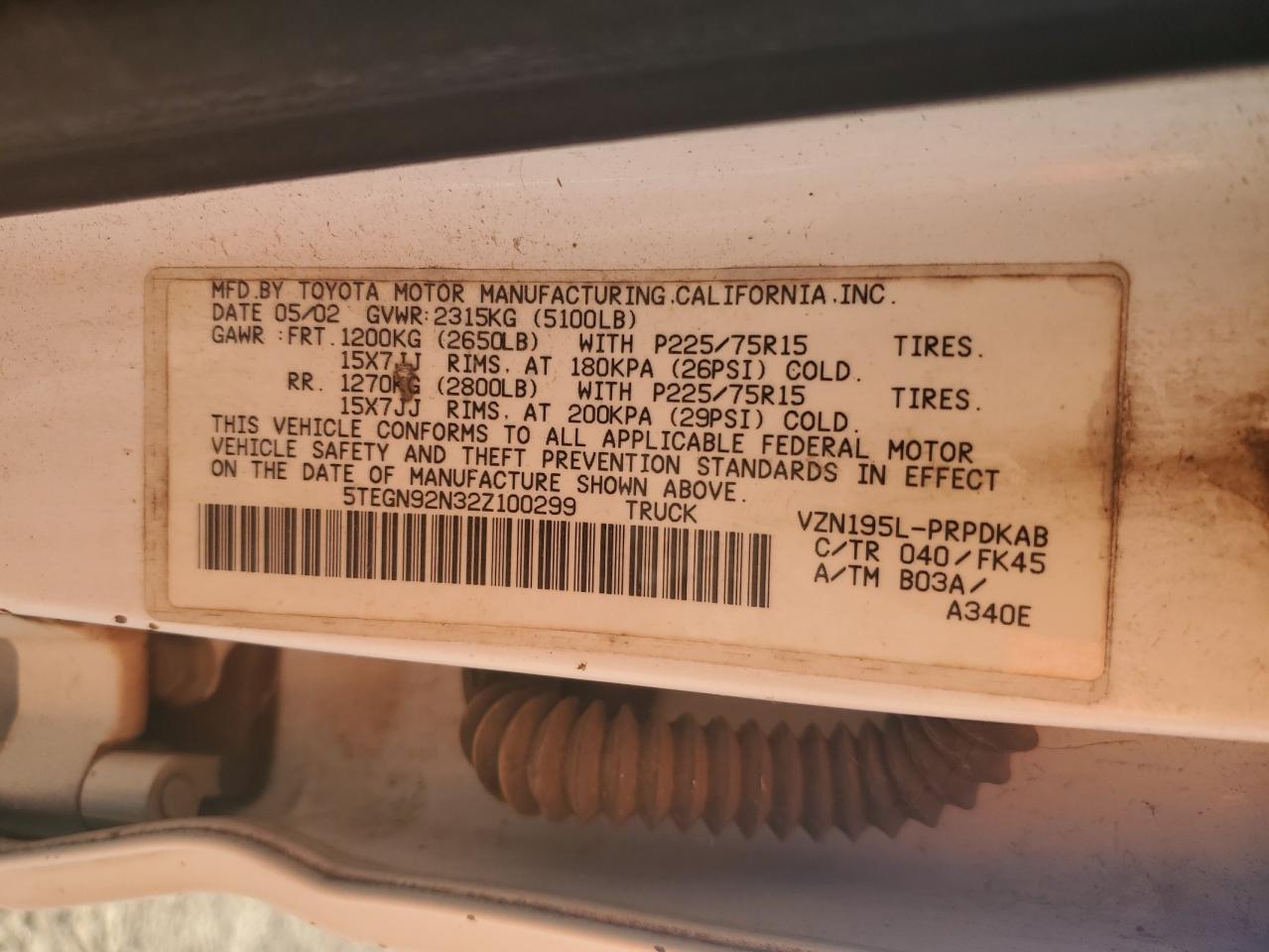 2002 TOYOTA TACOMA DOUBLE CAB PRERUNNER из США