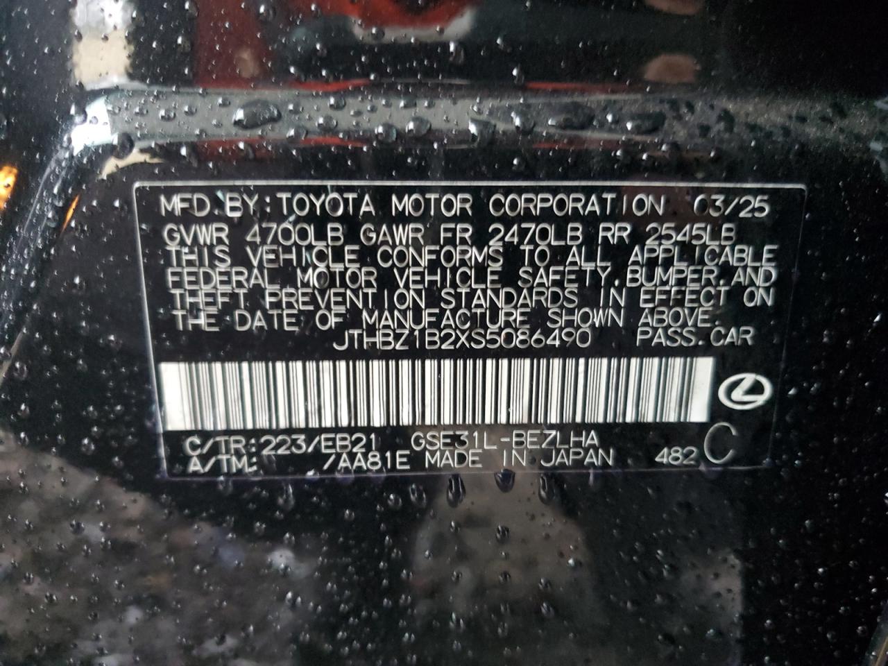 - ВИН: JTHBZ1B2XS5******